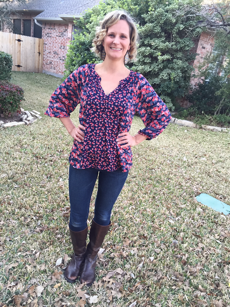 Now, if you'll excuse me, the temperature has risen 10 degrees while I was writing this. I'm going to go switch out my boots for flats...or maybe sandals. Good thing this top goes with all of them!